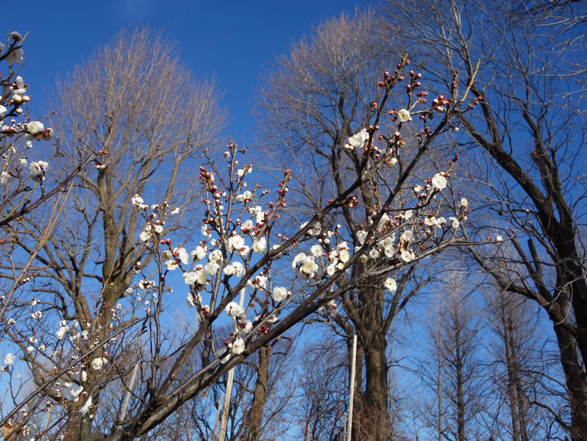 羽根木公園の梅林には、現在約670本の梅の木が植えられています。1月7日までに開花した梅は計132本です。なお、開花状況は木の中で花が一輪開いたときを開花として集計しています。開花した本数は「これまでに開花した梅の木の累計本数」であり、現時点で開花している本数ではございませんのでご注意ください。